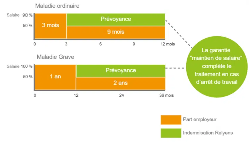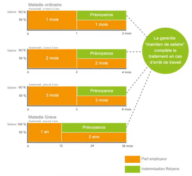 • Grâce à la prévoyance, votre agent bénéficiera d’un maintien complémentaire de 770 € par mois (90 % de sa rémunération habituelle) et ce jusqu’à son âge de départ à la retraite,