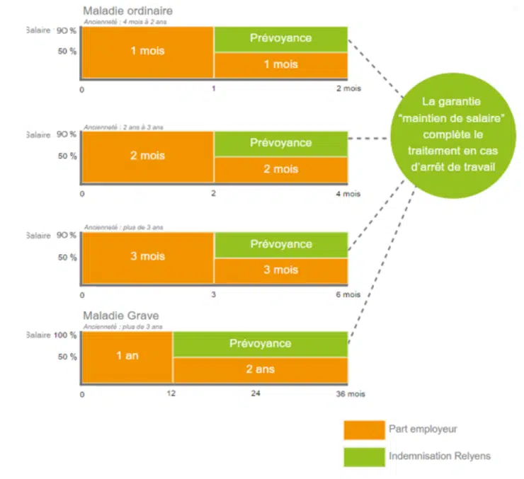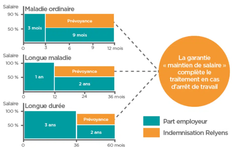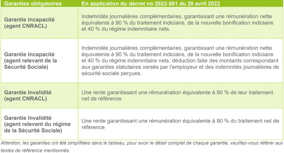 Les garanties obligatoires sont l’incapacité et l’invalidité à hauteur de 90 % du salaire net.