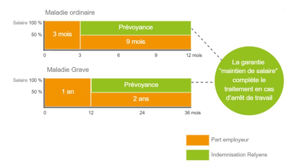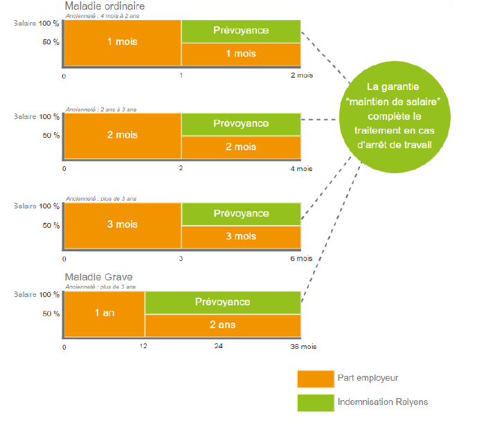 Les garanties obligatoires sont l’incapacité et l’invalidité à hauteur de 90 % du salaire net.